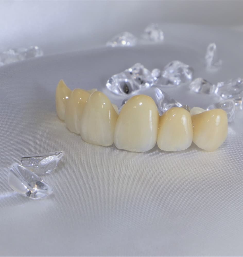 人工の歯には歯全体を覆う被せ物(クラウン)、噛み合わせの一部分を覆う詰め物(インレー)があります。それぞれ、使用する材料によっていろいろな種類があります。